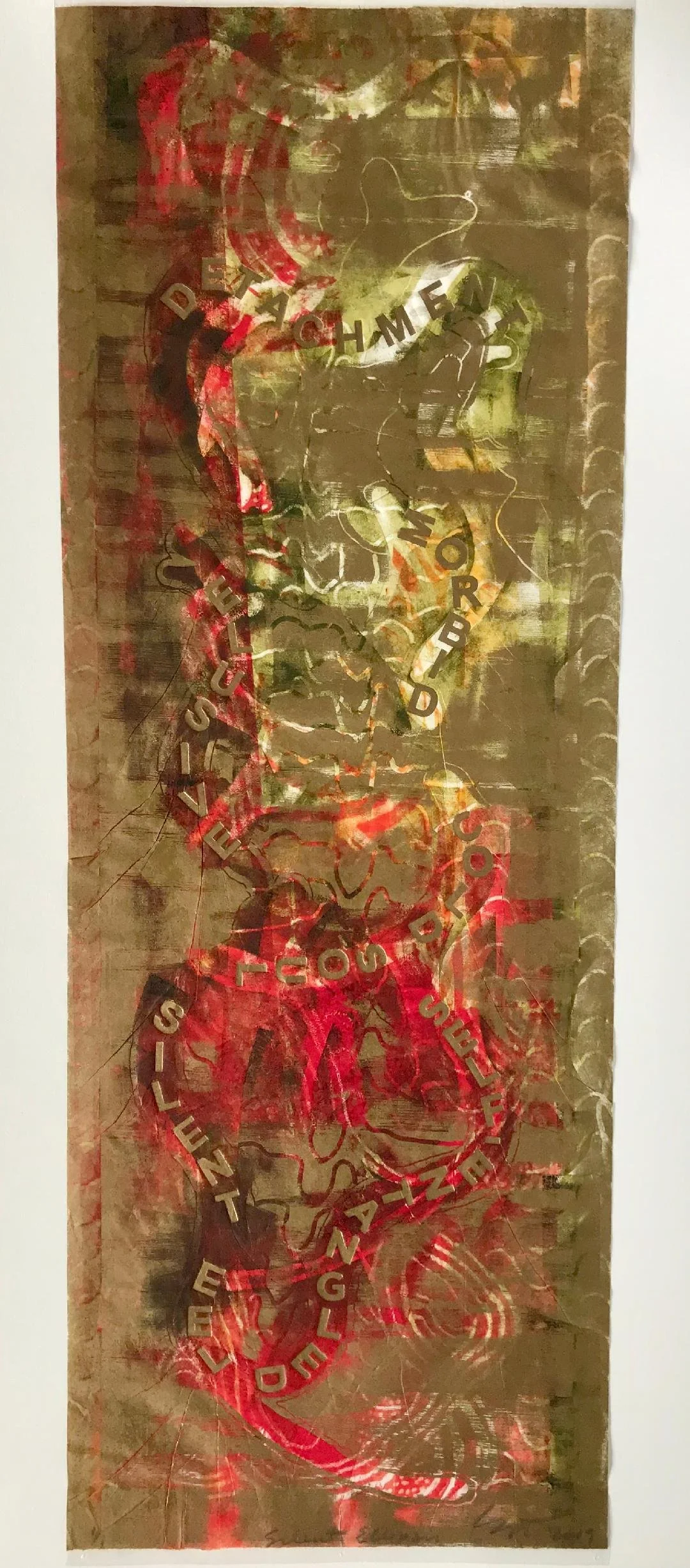 Self-Entangled, woodblock mono-print, 38”x14”, 2019
